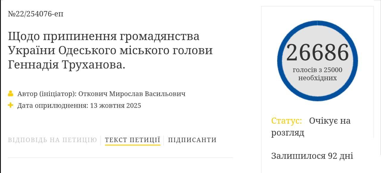 Петиция о лишении гражданства гауляйтера Одессы за день набрала 25 тысяч подписей