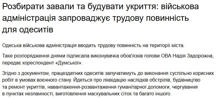 В Одессе вводят трудовую повинность, — распоряжение