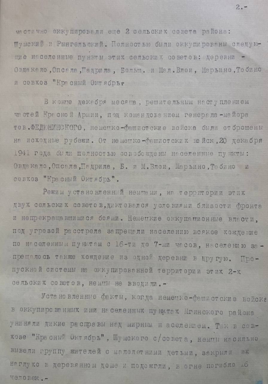 «Немцы насильно вывели группу жителей с малолетними детьми, закрыли их наглухо в деревянном доме и подожгли. В огне погибло 16 человек».