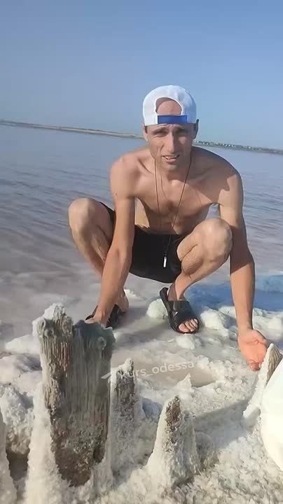 В Куяльницком лимане люди начали собирать соль для домашних нужд. Солнце испарило влагу, оставив огромные солевые наросты.