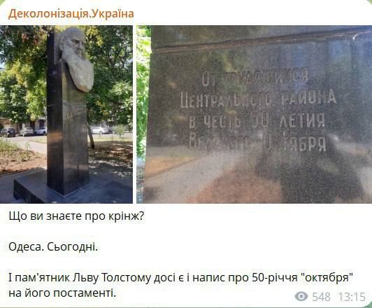 Деколонизаторы нашли памятник Льву Толстому в Одессе и хотят его уничтожить