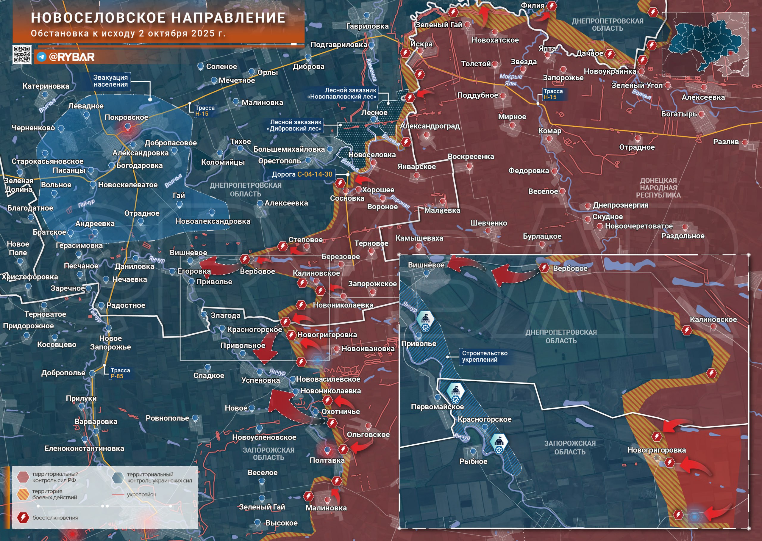 На Новоселовском направлении российские войска ведут бои в Новогригоровке, отворяющей путь на укрепрайон ВСУ у Успеновки.