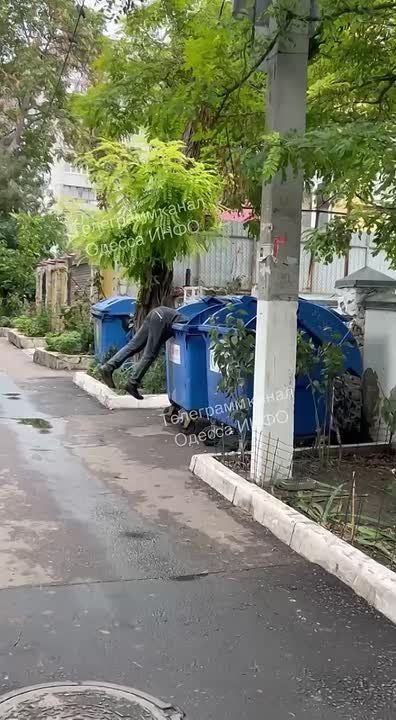 Бедолага пытается что-то выудить из контейнера. Может парню просто нечего есть?