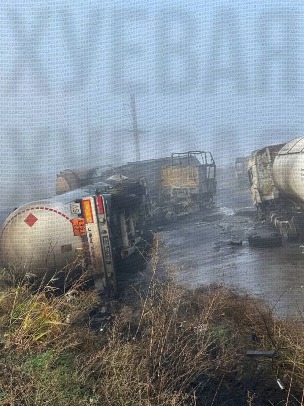 Грузовики с топливом в Измаиле Одесской области после прилета «Гераней».