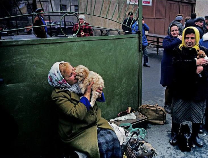 Бомжеватого вида дядя решил поцеловать собакена, который тихо-мирно дремал на руках у хозяина.Судя по реакции, пёс не разделял нежных чувств мужика.
