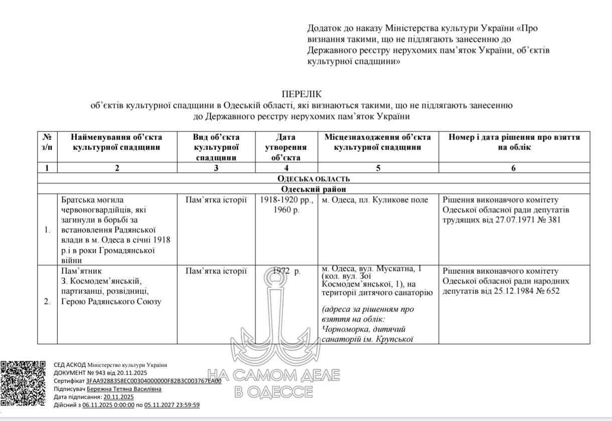 Ещё шесть страниц истории стёрты. Министерство культуры Украины исключило из реестра памятников шесть объектов в Одесской области.