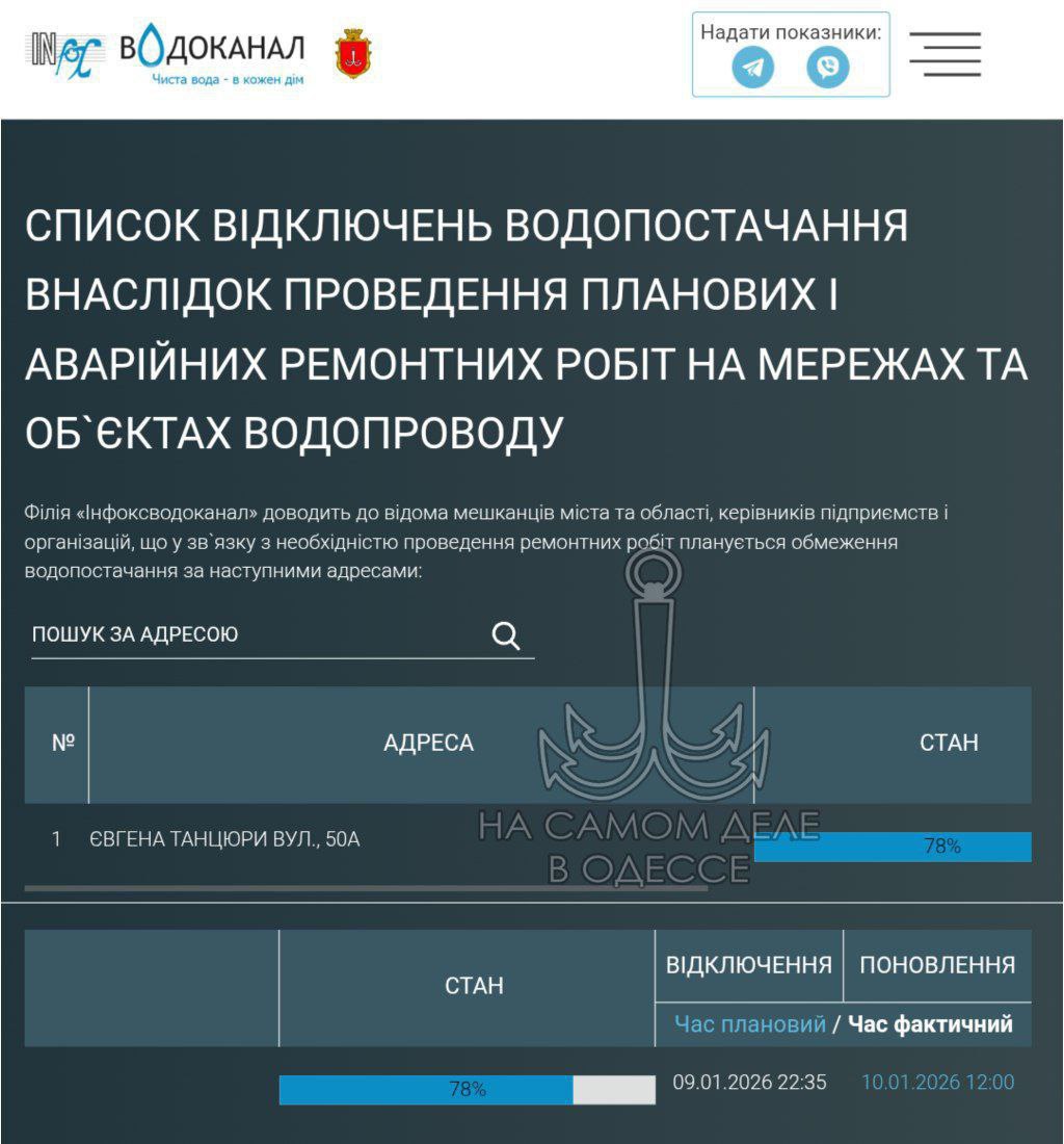 Коммунальные службы 10 января 2026 года в Одессе и области информируют: