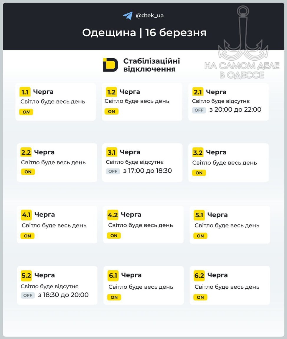 Коммунальные службы 16 марта 2026 года в Одессе и области информируют: