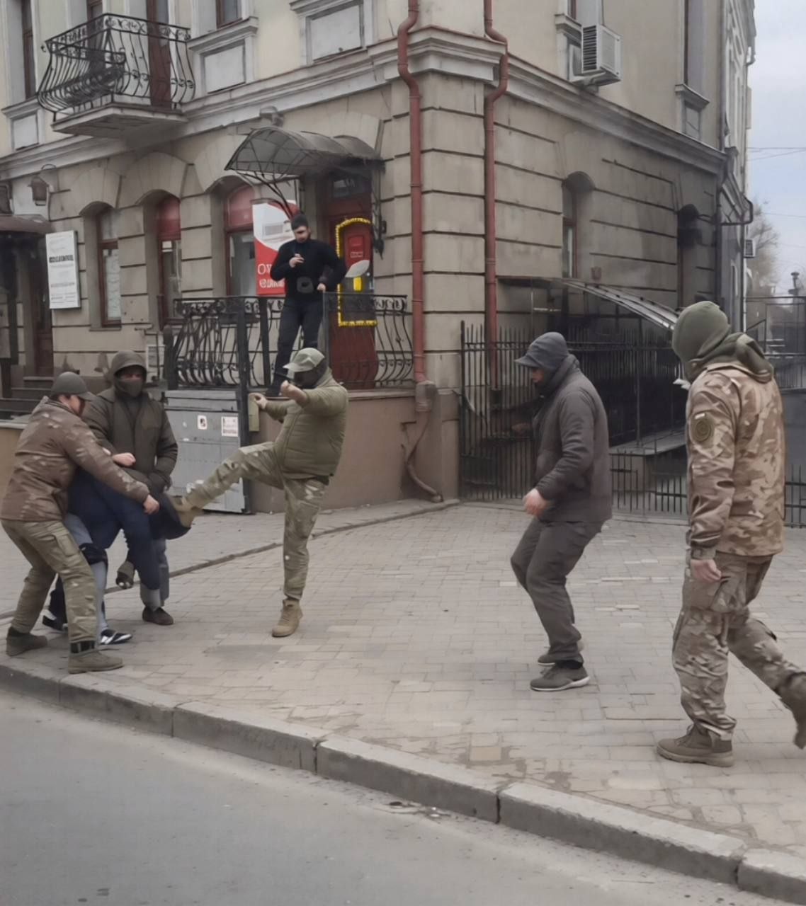 Реалии 2026 года ТЦК. Двое держат третий бьёт с ноги в голову