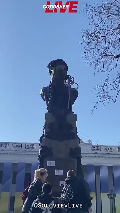 В Одессе укронацисты набросили петлю на памятник Александру Сергеевичу Пушкину и повесили объявление «Ищу бульдозер». Местные жители попытались самостоятельно пресечь акт вандализма, завязалась перепалка.