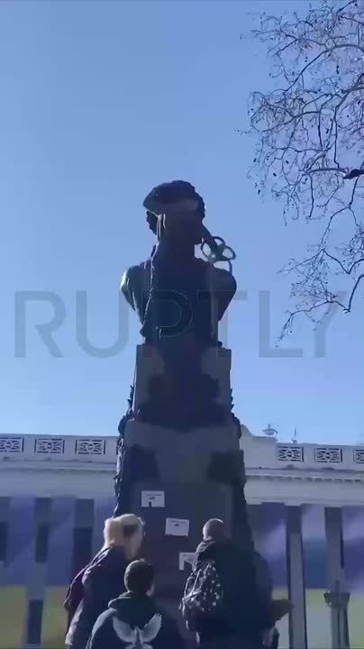 В центре Одессы неизвестные набросили на монумент великому русскому поэту петлю и повесили провокационное объявление: «Ищу бульдозер». Останавливать акт вандализма никто не спешил.
