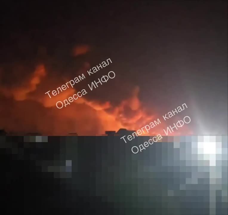 Сильный пожар на объекте в Одессе после налёта дронов.