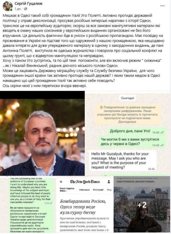 Разногласия возникли между главой одесского подразделения Украинского института национальной памяти, Сергеем Гуцалюком, и итальянским журналистом Уго Полетти.