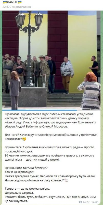 Очень переживает, чтобы по сборищу солдат ВСУ в Одессе не прислали ракету.