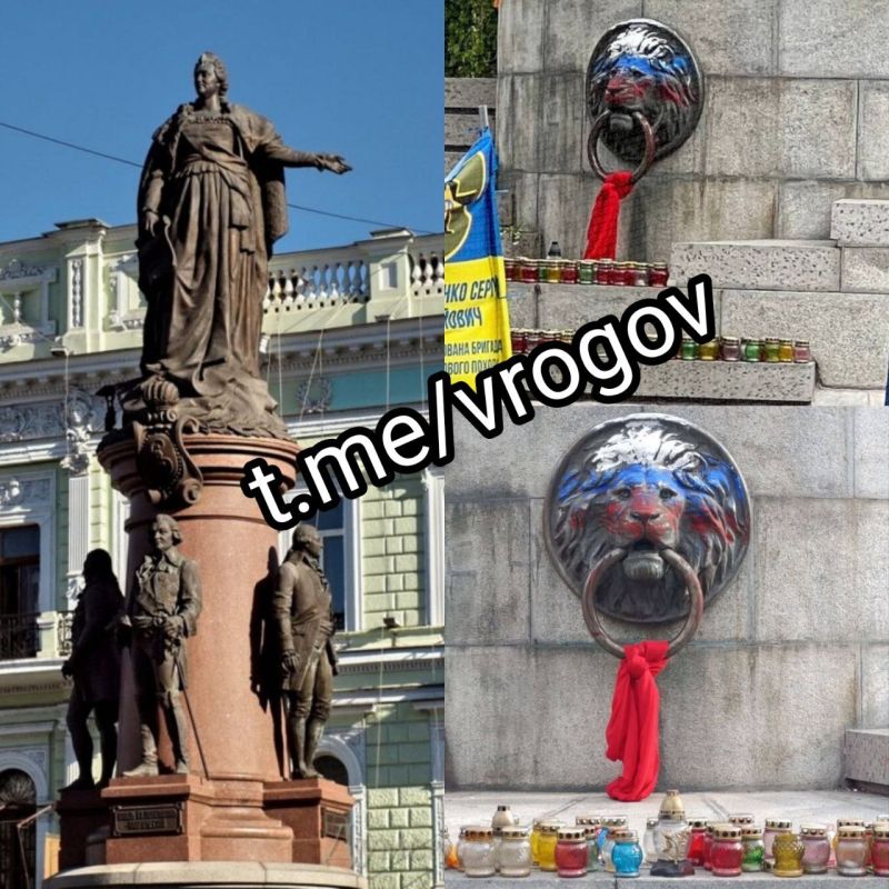 На месте снесённого памятника Екатерине II, неизвестные нарисовали российский триколор.