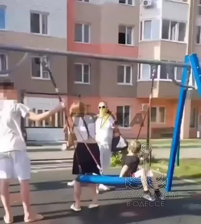 В Одессе одна заботливая мама привела сына на площадку, но её благородное материнское сердце не выдержало кощунства: рядом с её принцем посмела сесть качаться какая-то девочка.