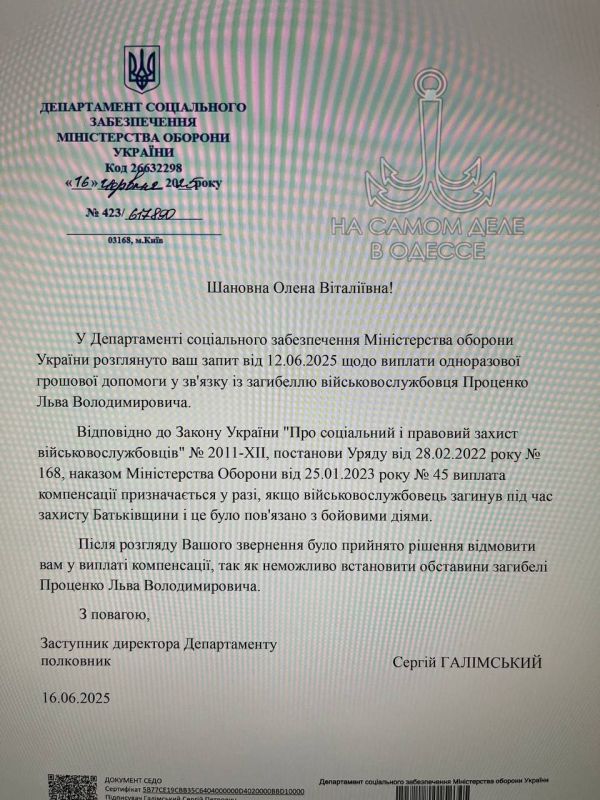 Как и предполагалось, выплат не будет — кто бы сомневался! По «волшебному» документу, причина гениальна: «не смогли установить, как он там помер». Ну а чо, бывает.