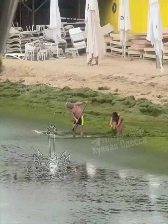На берегах Одесских пляжей препятствия в виде водорослей. Убирают своими силами. Пишут, что водоросли сильно воняют.