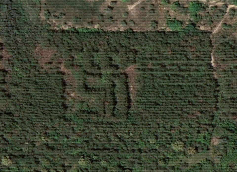 Он зарос травой, потому что его никто не убирает. Это видно на свежих спутниковых снимках.