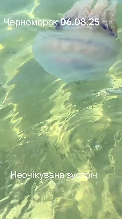 Отдыхающие удивляются медузе на пляже в Одесской области