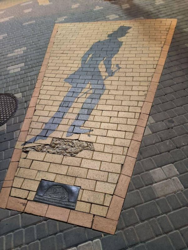 Бояться даже тени: в Одессе зарисовали арт-объект "Тень Пушкина", открытый в 2013 году.