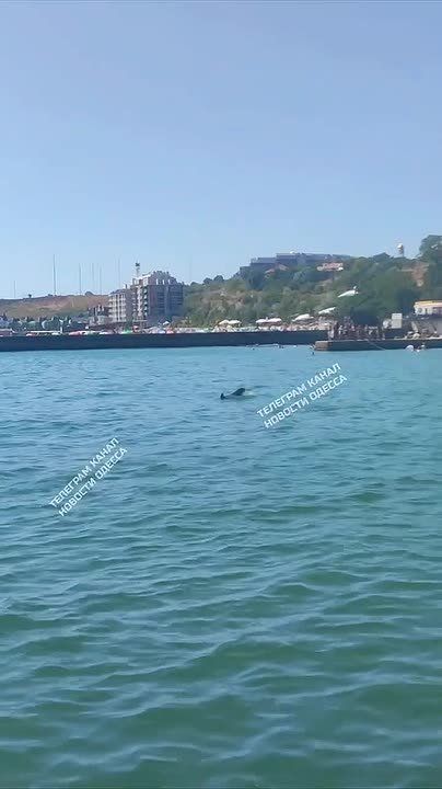 Отдыхающие на одесских пляжах радуются дельфинчикам