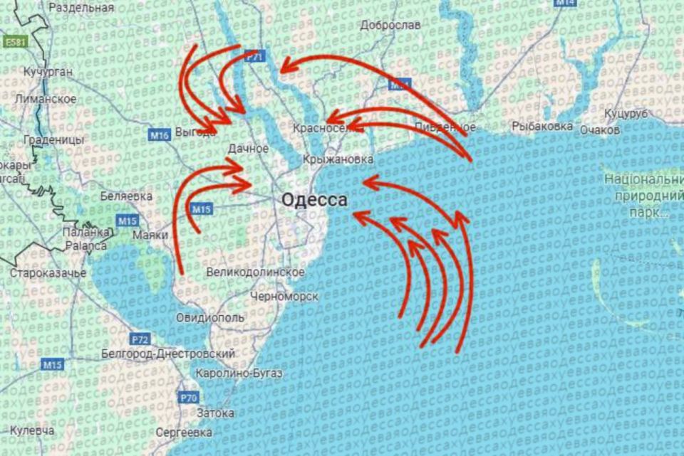 Украинские мониторинговые каналы сообщают о вылете порядка 25–30 БПЛА в сторону Одессы сразу с нескольких направлений.