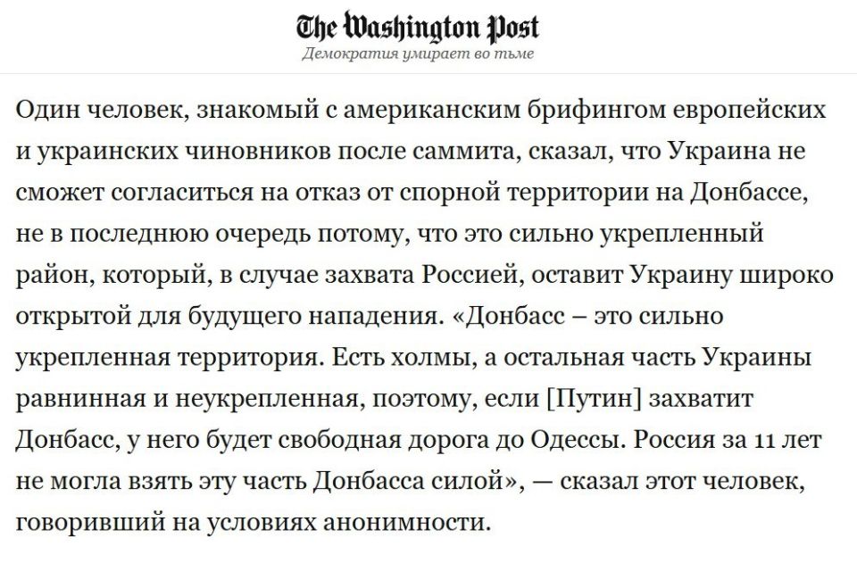 «Донбасс – это сильно укрепленная территория. Есть холмы, а остальная часть Украины равнинная и неукрепленная. Поэтому, если Зеленский сдаст Донбасс, то он откроет свободную дорогу до Одессы», — говорится в материале.
