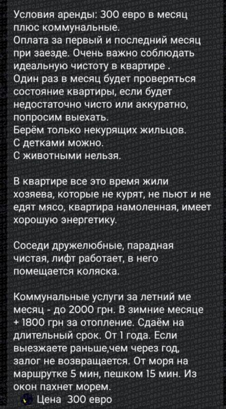 Необычное объявление о сдаче жилья появилось в Одессе. Владельцы предлагают «намоленную» квартиру, где раньше жили люди, которые не пили, не курили и не ели мясо.