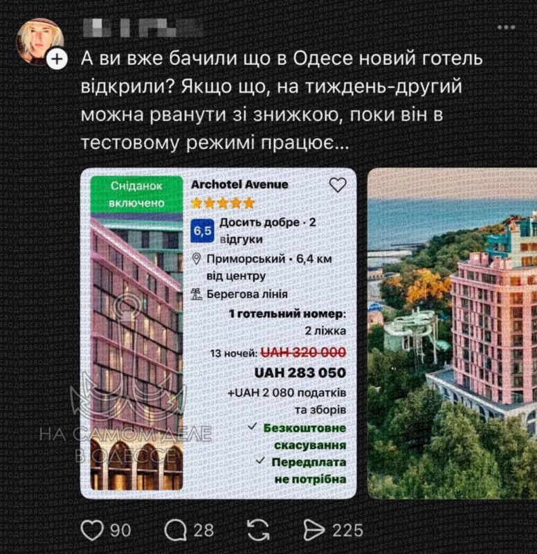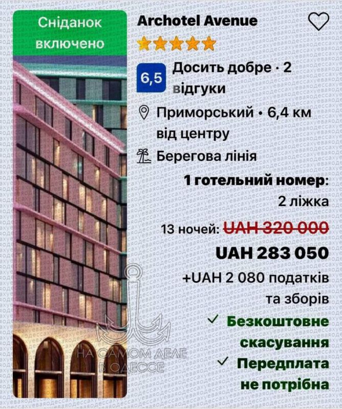 За 13 суток в одесском отеле — цена 283 000 грн!!! И то это со скидкой