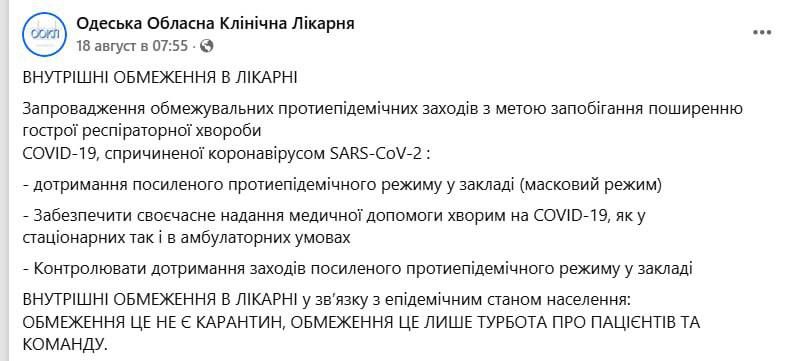 С 25 августа в некоторых больницах этих городов начали действовать ограничения из-за нового штамма коронавируса.