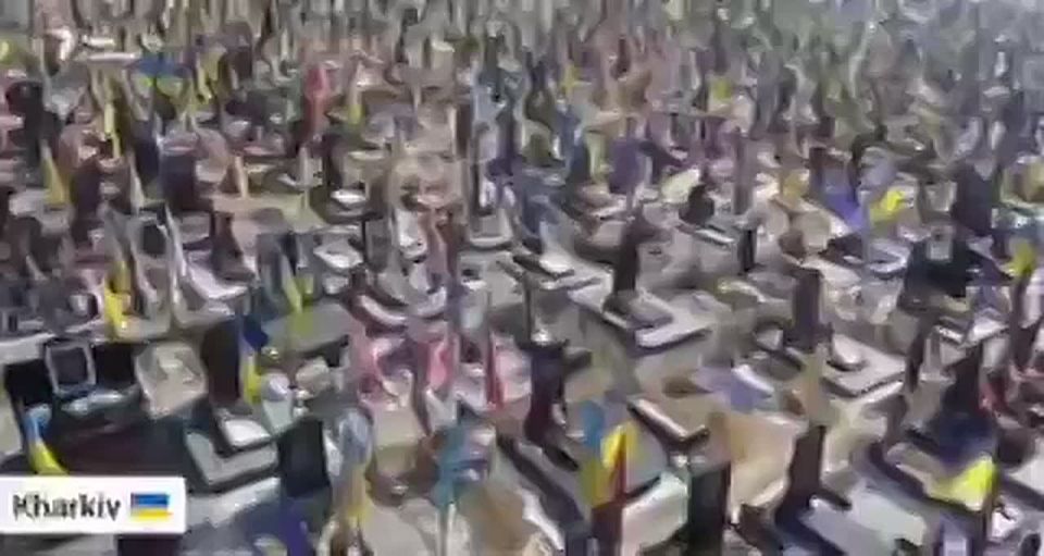 Из космоса территория Украины окрашена в жёлто-голубые цвета. Поля, кормившие миллионы человек, превращены в бесконечный погост, в сотни тысяч холмиков с торчащими из земли украинскими флагами.