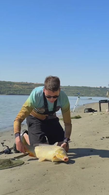 Рыбина попалась на удочку случайно. И парень не стал пользоваться слабостью прожорливого сазана.