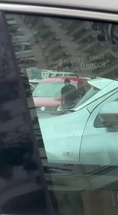 В Одессе неадекватный мужчина бил машины на проезжей части и задул водителя перцовкой