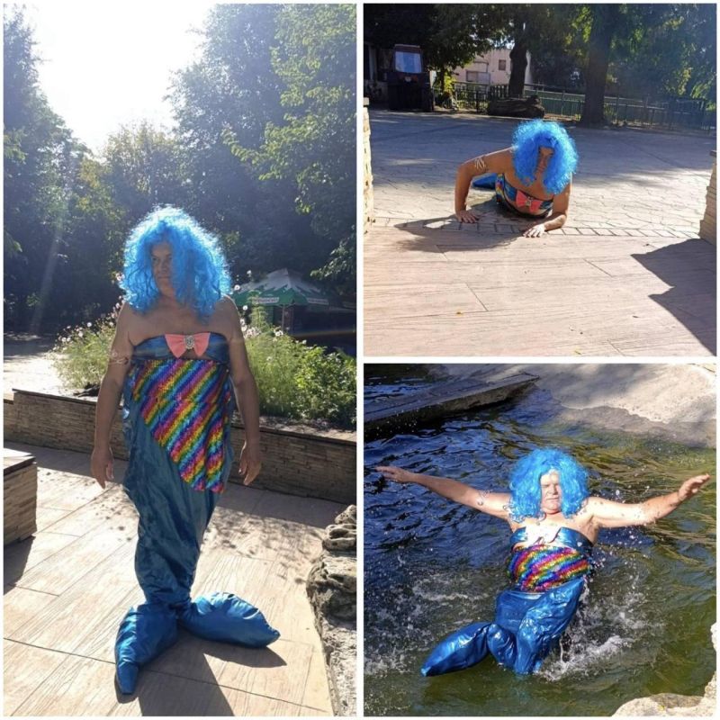 Директор Одесского зоопарка нарядился русалкой. Говорит, что для съёмок клипа.