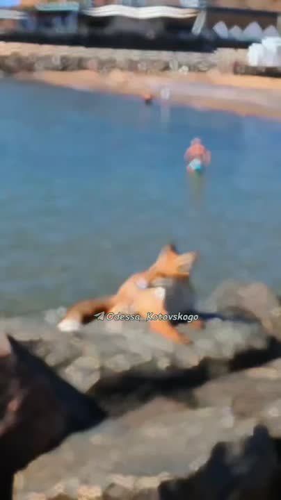 В Одессе лиса загорает на пляже