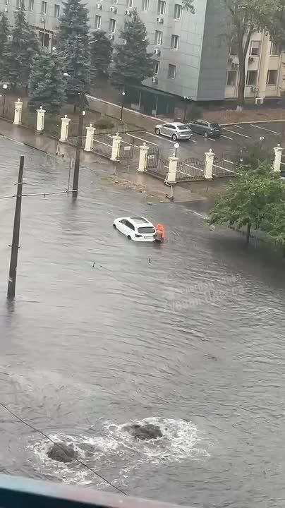 На Балковской мужчина стоит около своей потонувшей машины с 7 утра