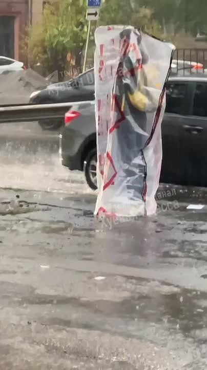Мужчина в Одессе оделся в пакет, чтобы не намокнуть в этот апокалипсис.