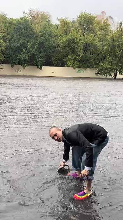 Пацанчик делает вид, что ловит рыбу на автодороге в Одессе