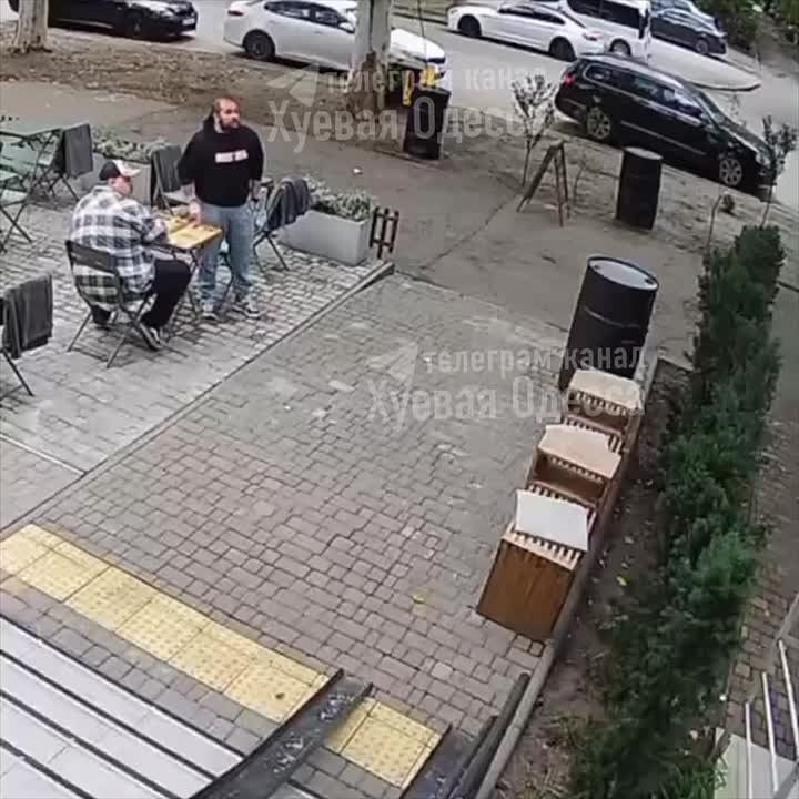 Толпа месится на улице. Куча парней выясняют отношения, полицейские пытаются вмешаться, но и им достаётся.Всё перемешалось: руки, ноги, кулаки, полицейские...Блокнот Одесса