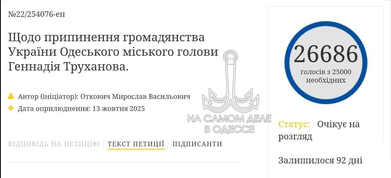 Понаехавшие слишком набрали силу! Петиция о лишении гражданства мэра Одесты Труханова всего за один день преодолела рубеж в 25 000 подписей. Теперь вопрос должен рассмотреть президент Зеленский.