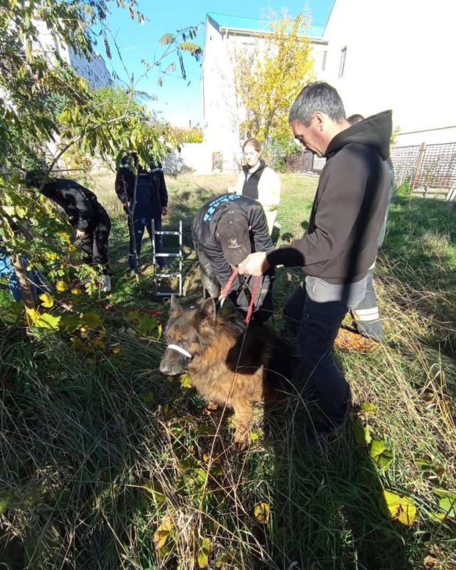 Сегодня четвероногий исследователь решил проверить глубину колодца и застрял там.