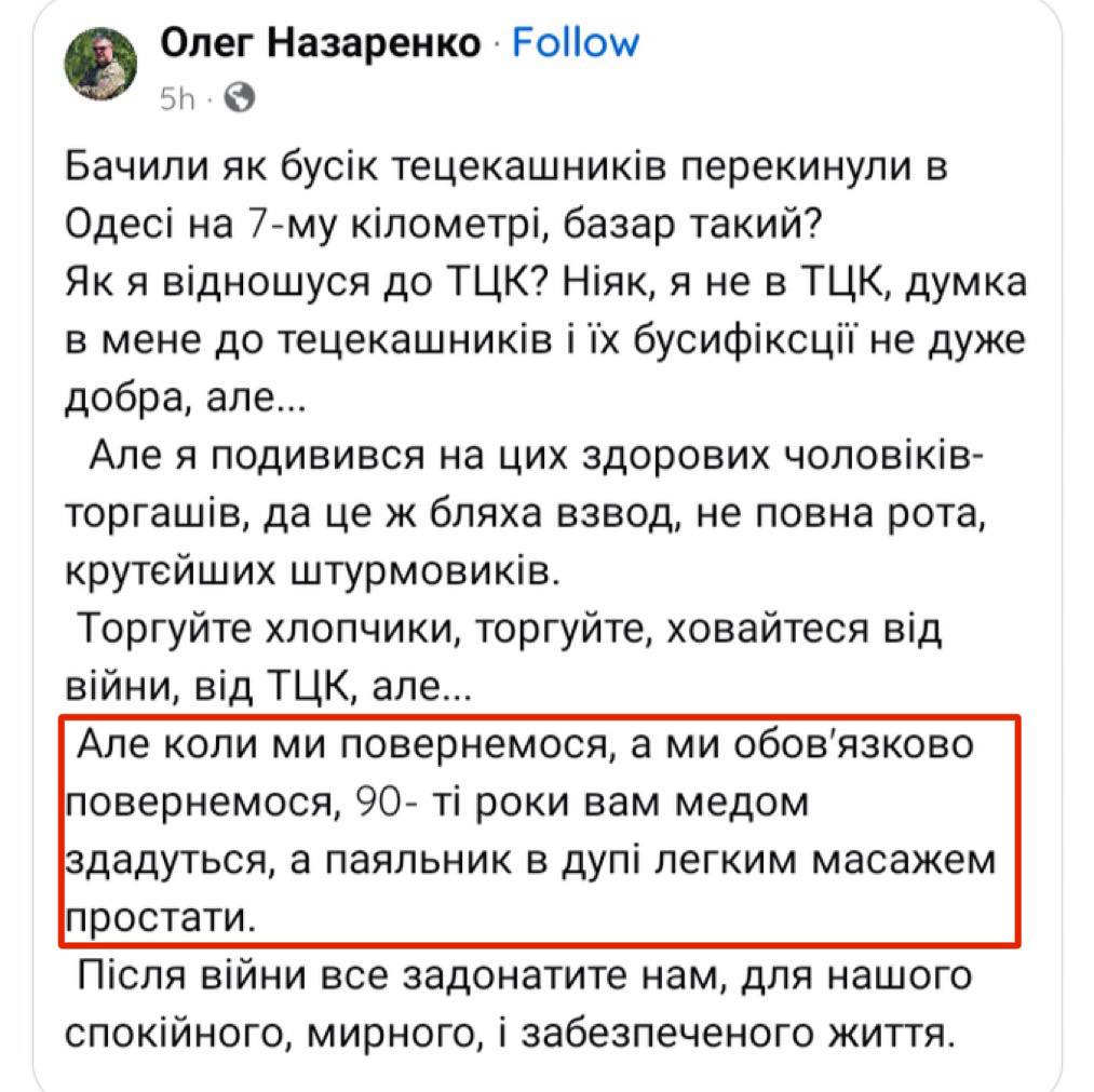 Особое возмущение у боевиков вызвал акт гражданского неповиновения в Одессе. Военные в окопах восприняли протесты мирного населения как предательство, за которое намерены жестоко отомстить. Один из ВСУшников заявил, что виноват «неправильный народ», не желающий разделять тяготы войны.