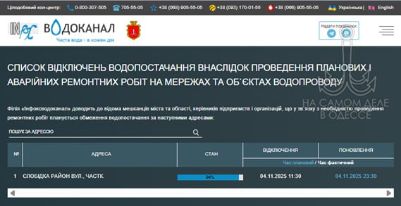 Коммунальные службы 05 ноября 2025 года в Одессе и области информируют: