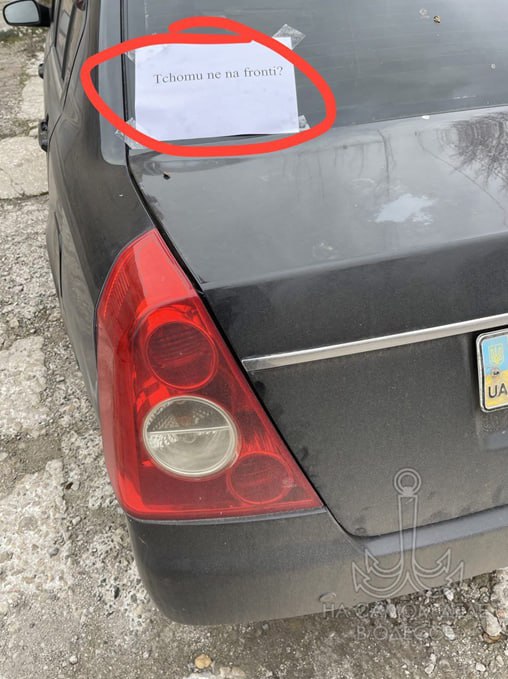 В Праге выразили свою любовь и поддержку беженцев из Незалёжной, налепив на машину с украинскими номерами бумажку с вопросом: «Почему не на фронте?»