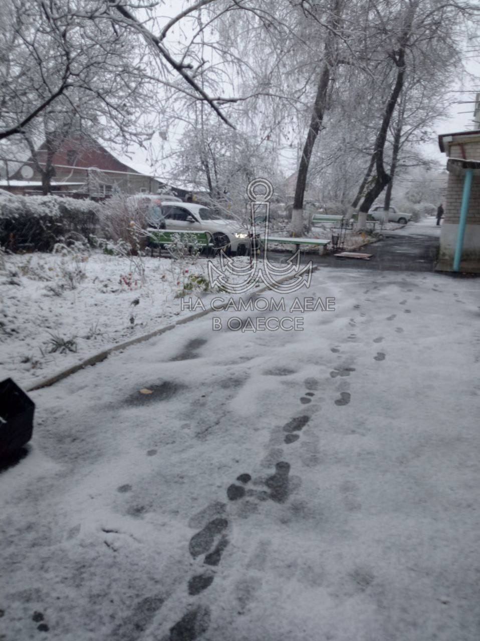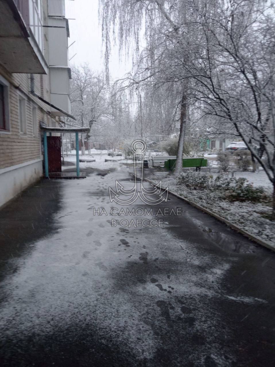 В Одесской области, в Подольске выпал первый снег.