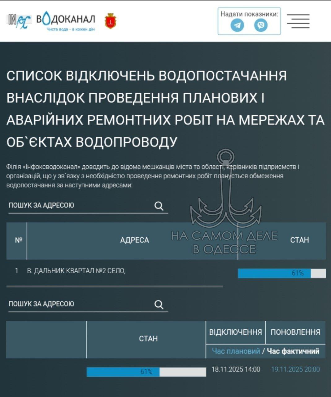 Коммунальные службы 19 ноября 2025 года в Одессе и области информируют:
