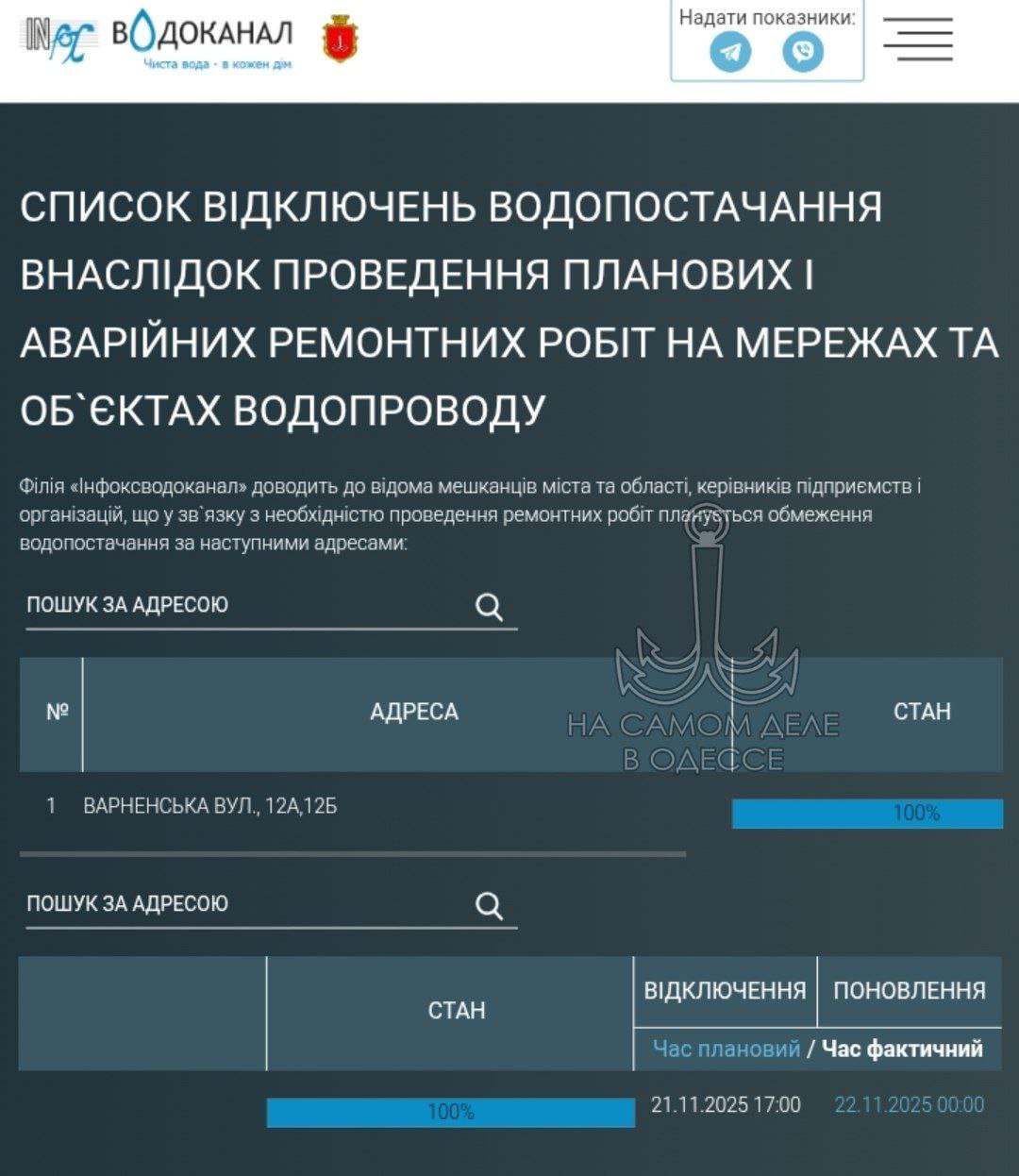 «Инфоксводоканал». Вода будет отсутствовать по адресу улица Варненская 12а и 12б.