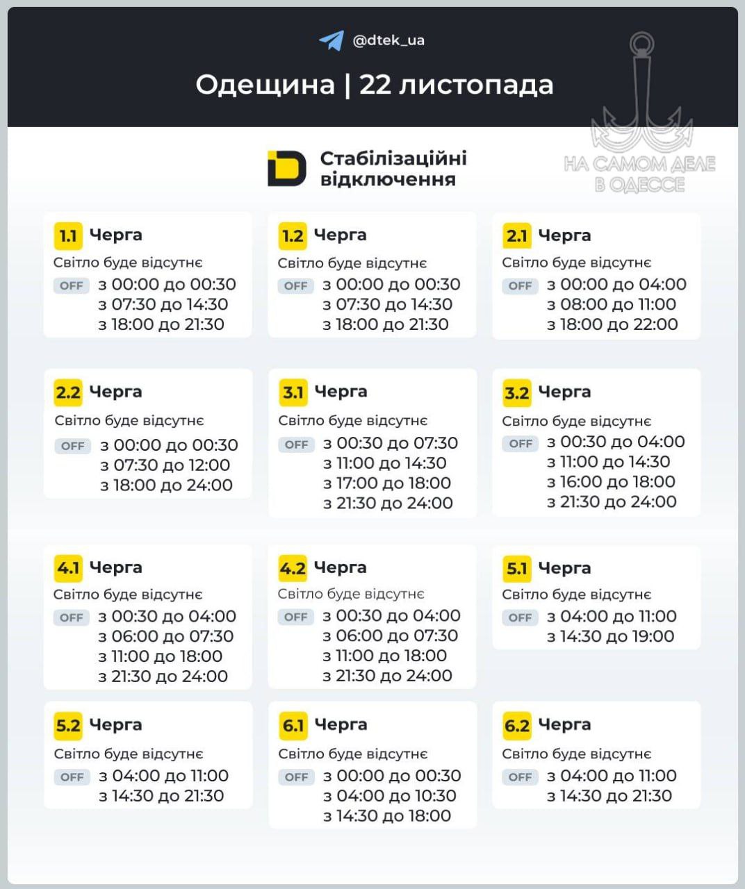 ДТЭК. Отключение света продолжается по графику.