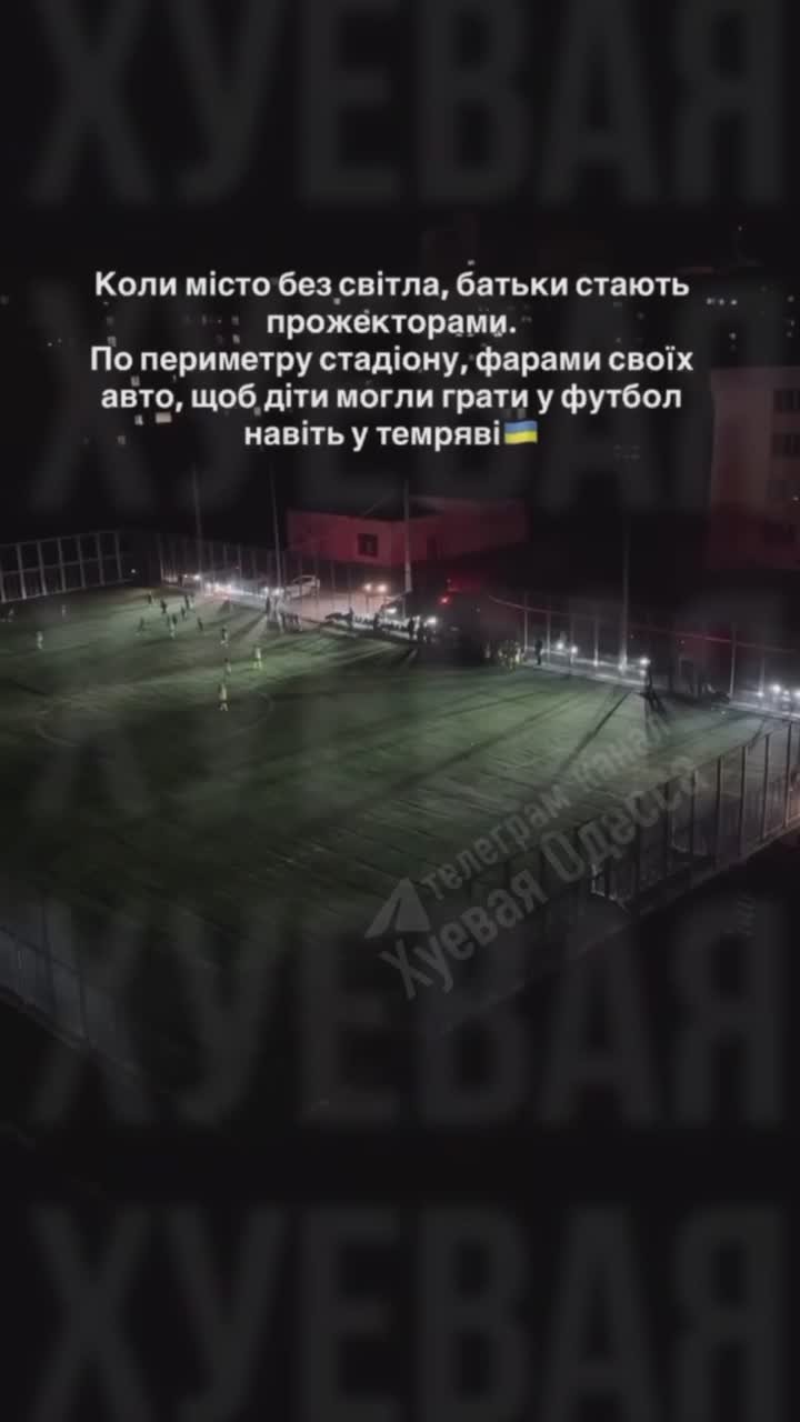 В Одессе родители маленьких футболистов освещали футбольное поле фарами машин